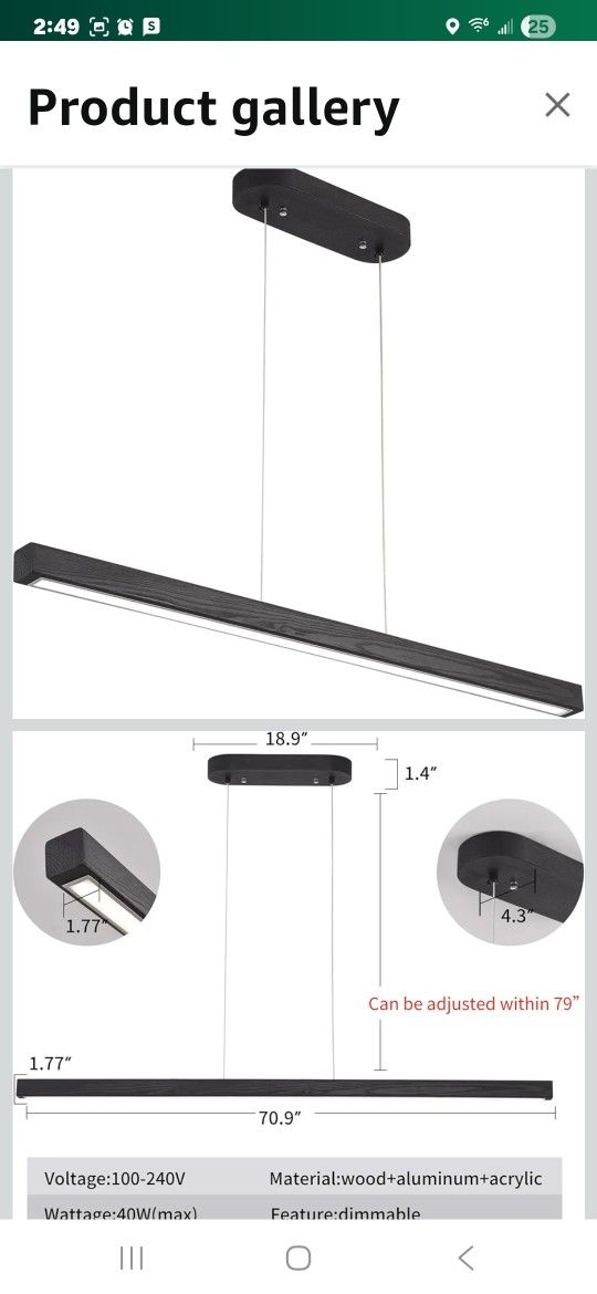 71" Black Linear Pendant Light Wooden Led Linear Pendant Light Fixtures Ceiling Hanging Dimmable Pendant Lights for Dining Room Kitchen Island Pool Ta
