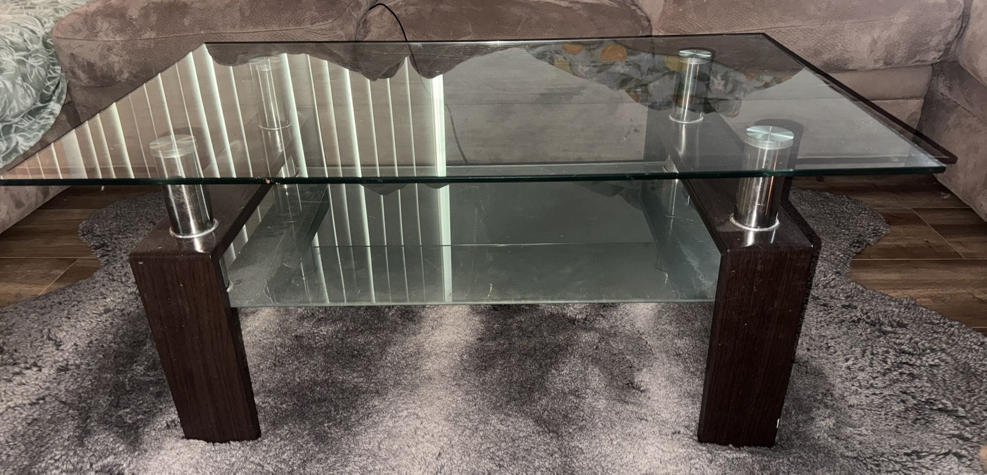 2 Tier Glass Coffee Table Room Tempered Glass Coffee Table