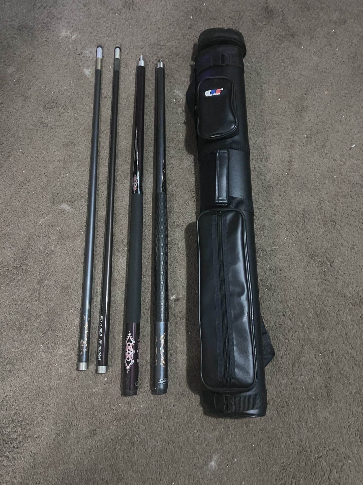 2 Pool que sticks with traveling bag used for about 5 rounds