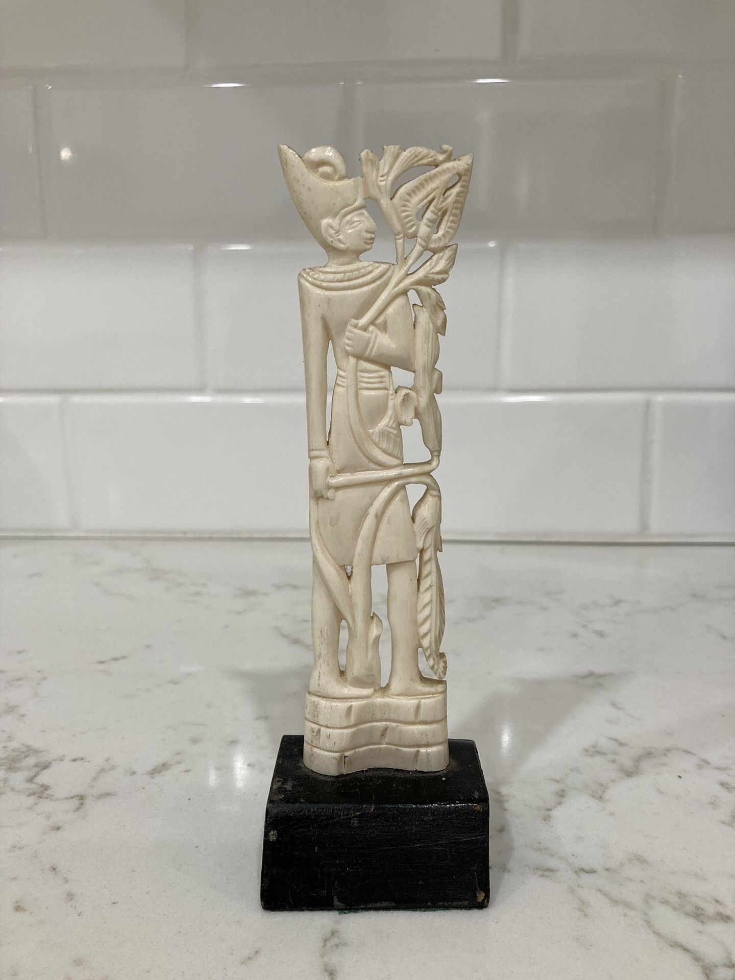 Vintage Hand Carved Bone Egyptian Pharaoh Statue