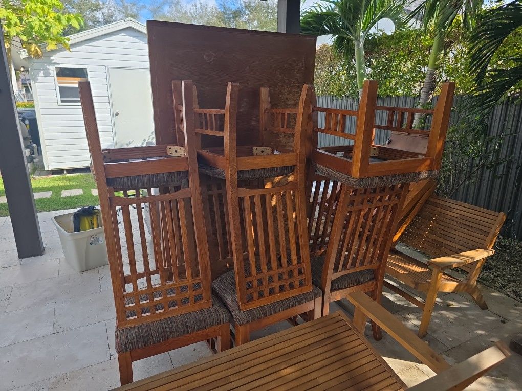 Free free solid wood dining table and chairs. 6 chairs and extension Ned's paint TLC