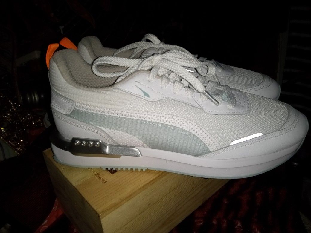 New Puma Women's City Rider Molded Trainer Shoes. Brand new. Never worn. Size 9. No box. White color with light pastel accents. Very stylish comfortable training shoes. Perfect for casual wear or workouts.