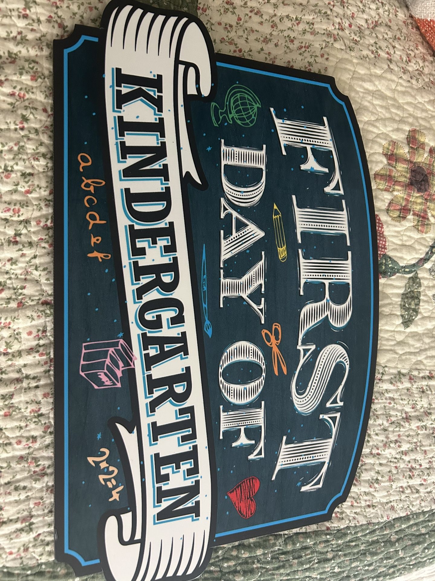 First Day of Kindergarten sign. Brand new. $10 . Cash only