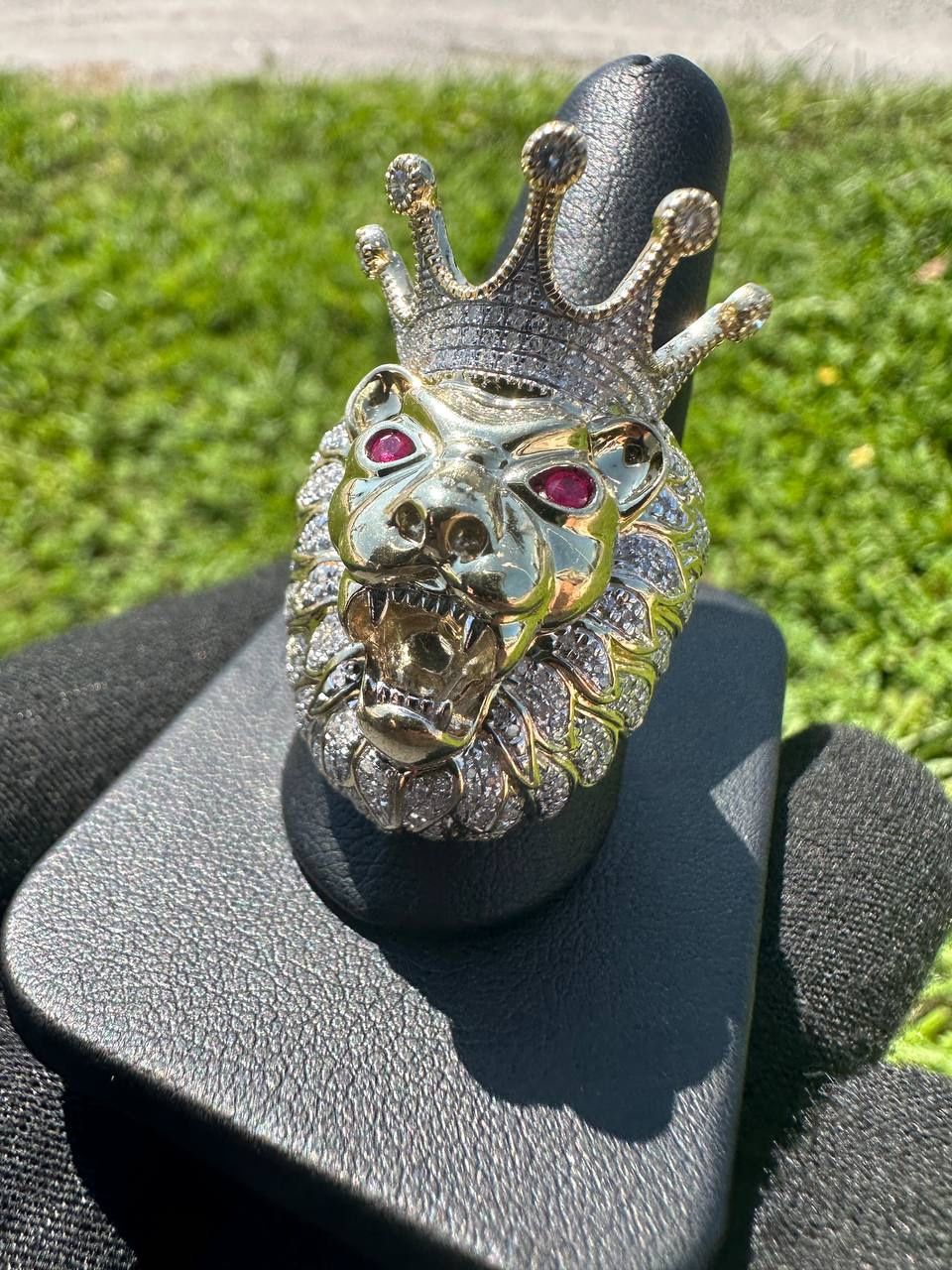 19,3 grams of 10k solid yellow gold 5ctw diamond 💎 & ♦️ ruby men’s Lion king 🦁 👑 ring Size 11 We buy Rolex and Breitling at Vipawn Boca Raton 💰