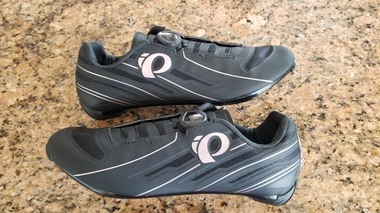 Pearl Izumi Womens Race V5 Road shoes condition: like new make / manufacturer: Pearl Izumi model name / number: Race V5 Road size / dimensions: 41.5 or womens 9-9.5 Pearl Izumi Race v5 Road Shoes with BOA closures - Womens - size 41.5 or US 9 or 26cm These Shoes were only used a couple times inside on a Peloton fitness bike and they look like new! Includes a pair of Look Delta red cleats with hardware. Cost $160, priced for quick sale at $69 This popular footwear choice combines serious stiffness with superior comfort. The nylon sole is bolstered with a carbon mid-sole insert to provide top-of-the-line stiffness for instant power delivery to the pedals. The unique Bi-Directional Boa closure pulls the laces from both sides to ensure equal tension across the top of the foot. A 3-layer bonded seamless upper eliminates hot spots and delivers incredible comfort. On the sole, the 1:1 Composite Power Plate with carbon fiber forefoot insert provides lightweight stiffness and durability ensuring that your power gets delivered directly to the pedals. Direct-Vent technology in the sole allows your feet some much-needed air circulation while the EVA foam and rubber heel bumpers let you confidently walk to the front of the line and order your Americano. And unlike most dedicated road shoes, these will work with 3-bolt road and 2-bolt mountain bike cleats so it's compatible with almost every pedal system on the market. - Advanced 3-Layer Seamless Composite Upper offers exceptional breathability and eliminates hot spots by adapting to your unique foot shape - 1:1 Zero Distraction Upper Fit mitigates foot discomfort by avoiding the soft tissue running along the top of the foot - Bi-directional Closure wraps the foot for a semi-custom fit and secure foot retention - Boa L6 reels allow 1mm micro-adjustability and pop up for full release - 1:1 Composite Power Plate with carbon fiber forefoot insert provides lightweight stiffness and durability (stiffness rating 8) - Bottom Plate features Direct-Vent technology for cooling and drainage - EVA foam and rubber heel bumper gives stability and walking comfort - SELECT Insole provides excellent longitudinal and transverse arch support CLEATS - 3-bolt road cleat & hardware