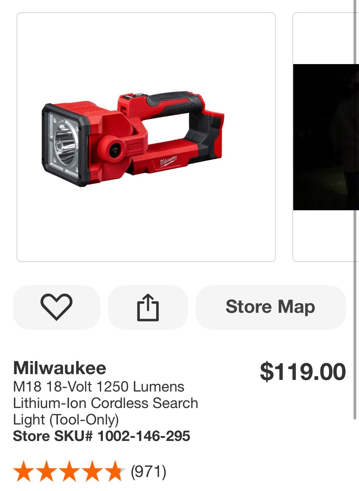 Milwaukee M18 18-Volt 1250 Lumens Lithium-lon Cordless Search Light (Tool-Only) Store SKU# 1002-146-295