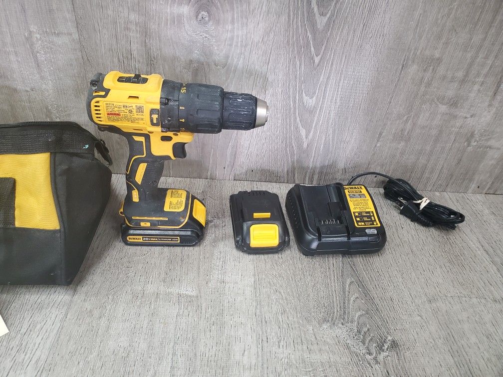 PRE OWNED DEWALT HAMMER DRILL KIT WITH 2 BATTERIES AND CHARGER MODEL: DCD778 LOCATION: 4267 MARKET ST. RIVERSIDE. 92501