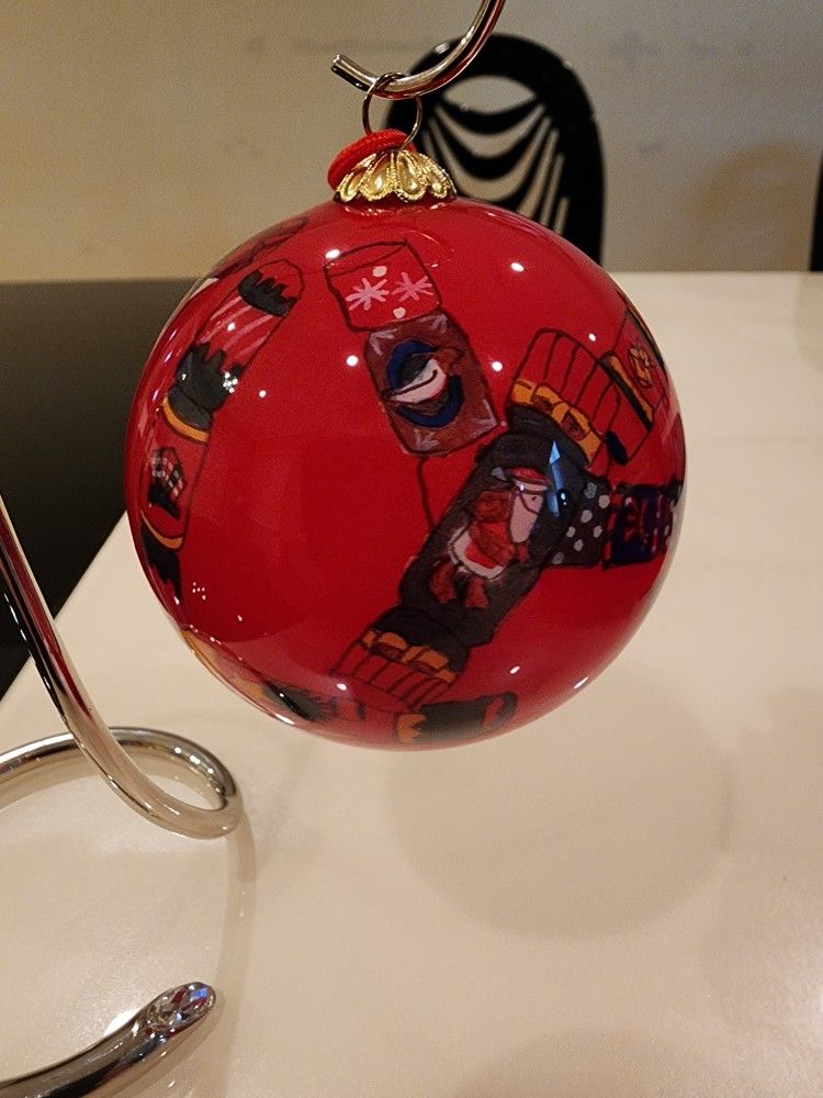 Hand blown glass ornament painted on the inside