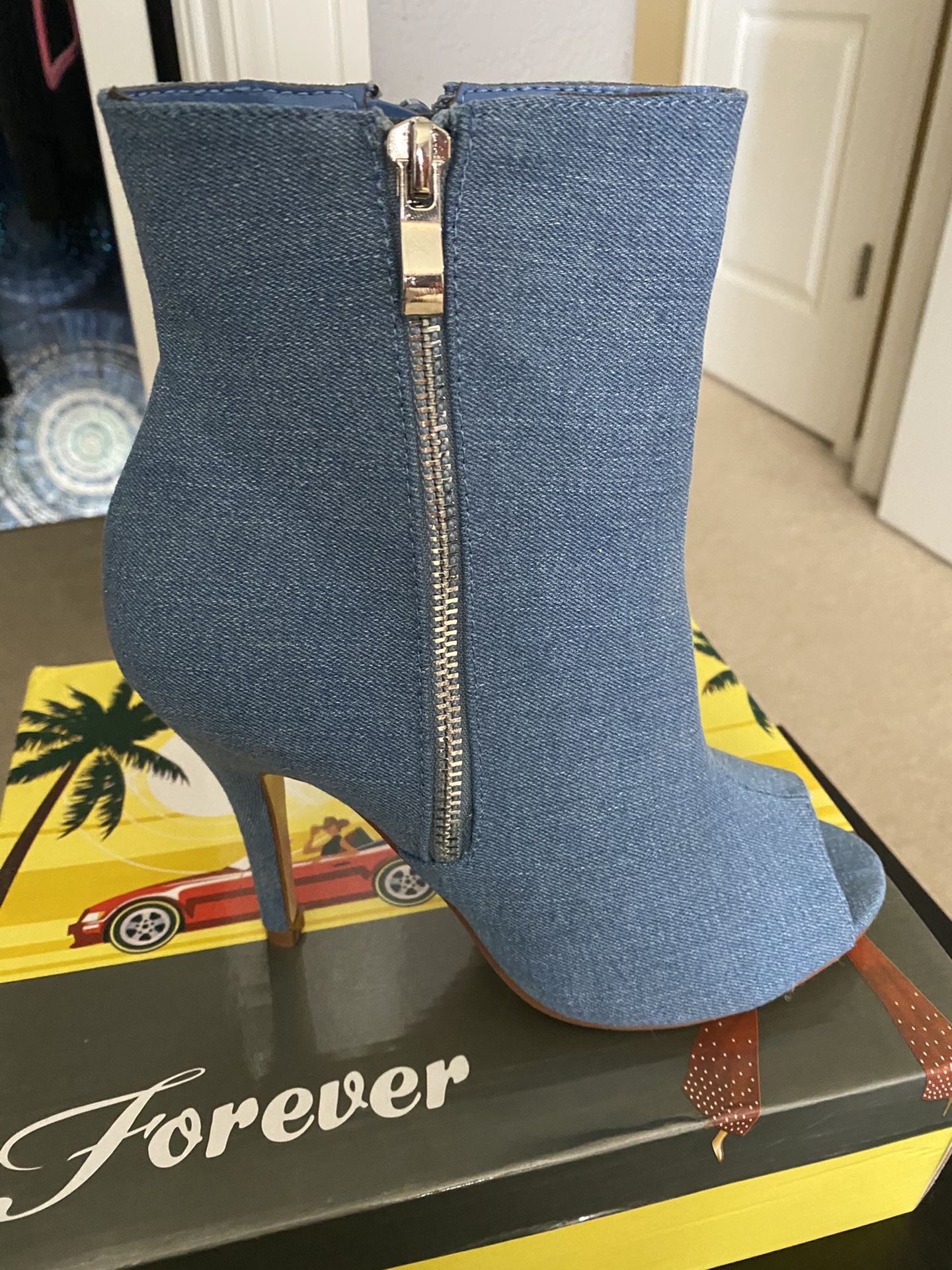 Brand new super cute denim heels! Great for summer with shorts or jeans! Selling because they don’t fit me ☹️
