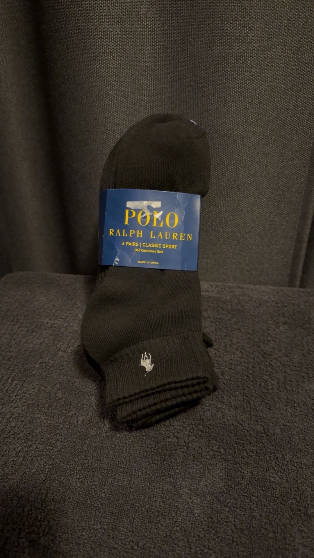 Men’s Brand New Black Polo Ralph Lauren Socks Comes With 6 Pairs Ankle Socks 6-12 Mens Size