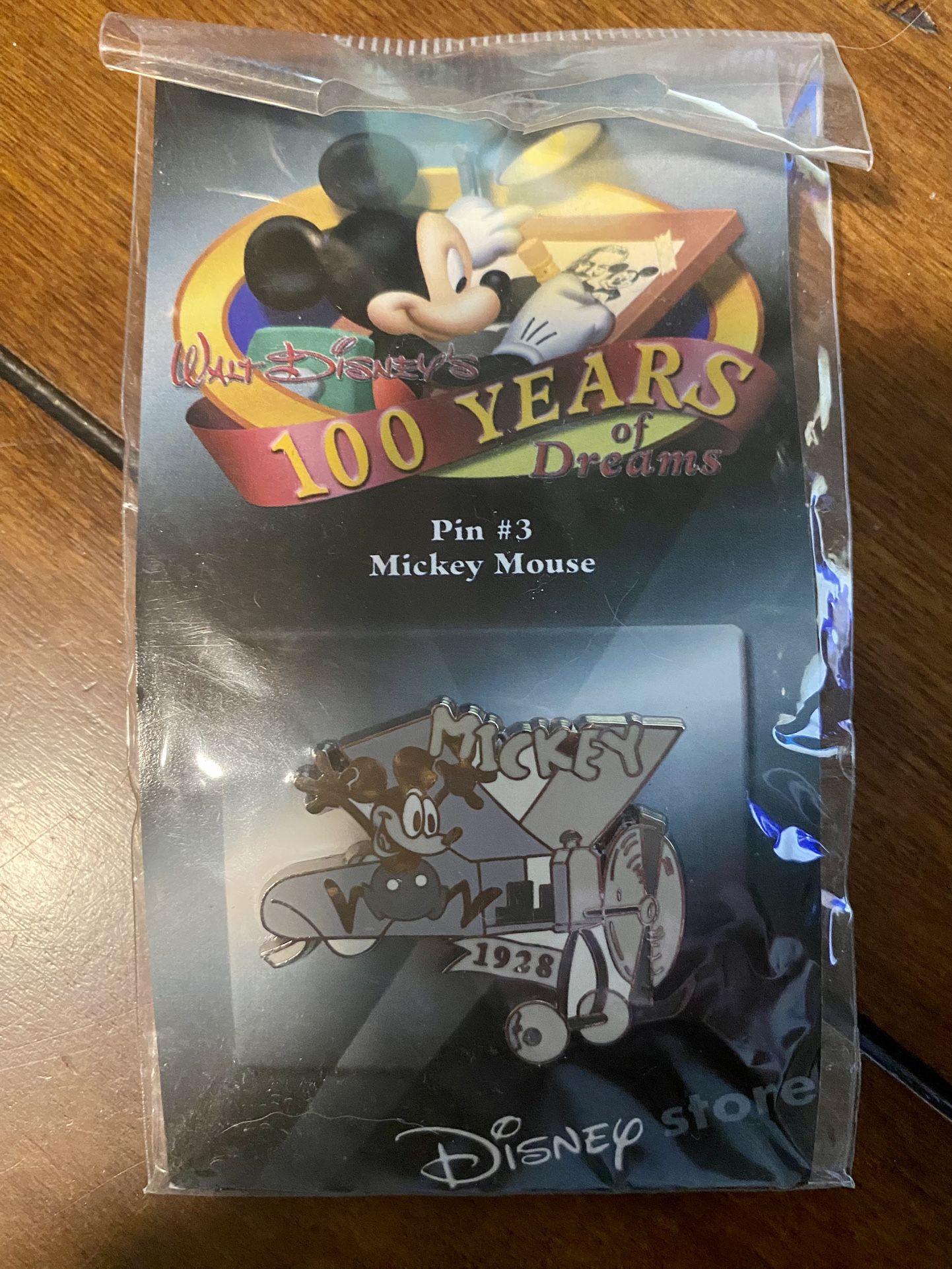 Metal pin featuring Mickey. From the 100 Years of Disney collection. New in package. Smoke free home.
