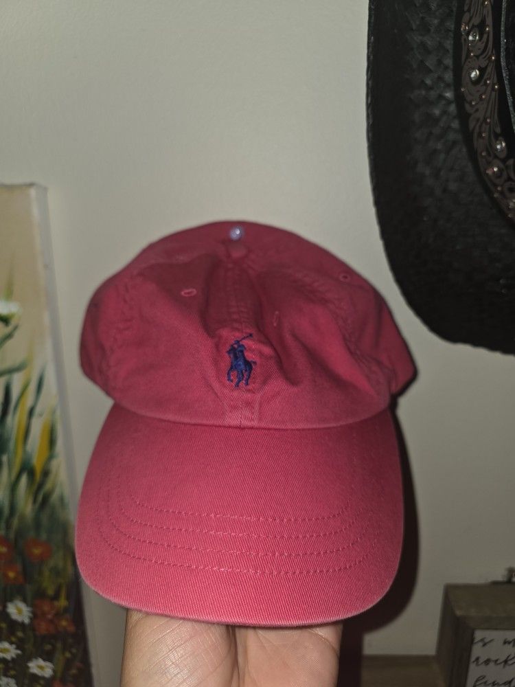 Pink Polo Ralph Lauren Baseball Cap W/ Navy Blue Embroided logo