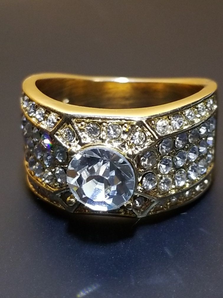 Women's men's vintage Diamond simulated yellow gold over 925s ring size 7.0