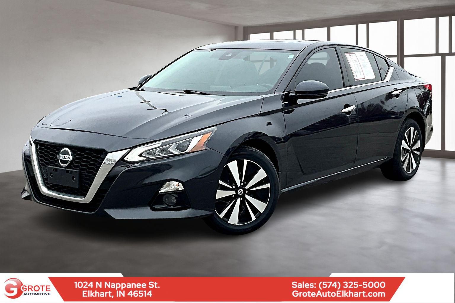 Introducing our fun to drive 2021 Nissan Altima SL AWD Sedan that's sure to impress in Storm Blue Metallic! Powered by a 2.5 Liter 4 Cylinder generating 182hp connected to an Xtronic CVT. This All Wheel Drive sedan moves with authority and efficiency, and it also sees nearly 35mpg on the highway. Our Altima's unforgettable design makes an impression with LED lighting, fog lamps, a power sunroof, dual chrome exhaust finishers, bold alloy wheels, and heated power mirrors with built-in turn signals. Check out the SL interior that is engineered for comfort with leather heated power front seats, a heated leather steering wheel, dual-zone automatic climate control, remote start, and push-button ignition. Take on your world with smart technology, too, including a 7-inch Advanced Drive-Assist Display, an 8-inch NissanConnect touchscreen, full-color navigation, Android Auto®, Apple CarPlay®, Bluetooth®, and a Bose sound system. It's easy to tune in and take off with benefits like these! Nissan helps you stay out of harm's way with Safety Shield technologies such as a backup camera, forward-collision warning, front/rear automatic braking, traffic-sign recognition, lane-keeping assistance, a blind-spot monitor, a driver-attention monitor, and ProPILOT Assist for hands-on semi-autonomous driving. Own our dynamic-looking Altima SL and discover a quick route to better driving. Save this Page and Call for Availability. We Know You Will Enjoy Your Grote Automotive Elkhart Test Drive Towards Ownership!