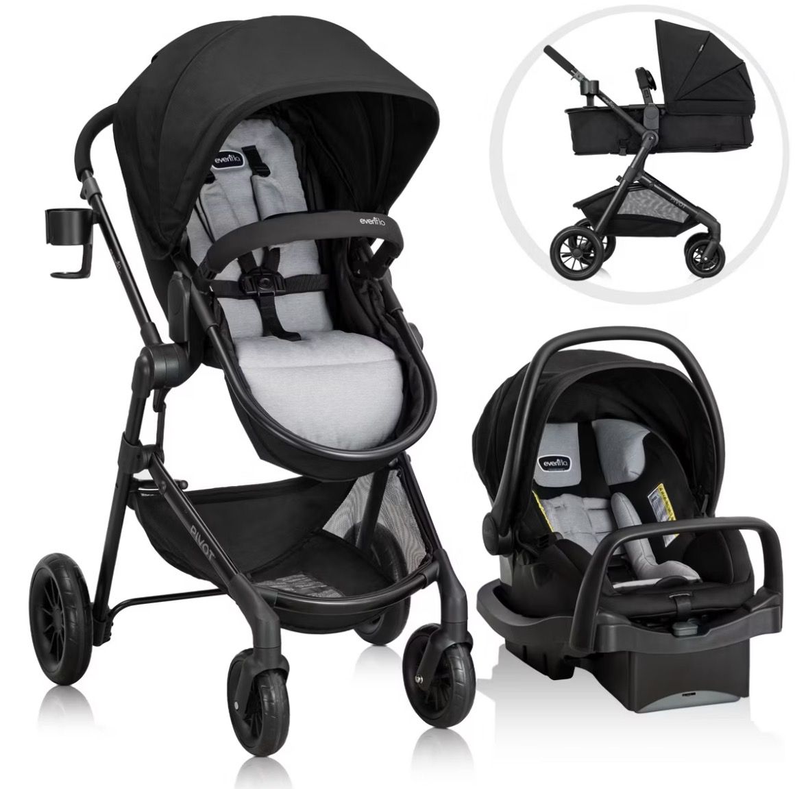 Evenflo Pivot Modular Travel System with LiteMax Infant Car Seat with Anti-Rebound Bar - Oxford Black