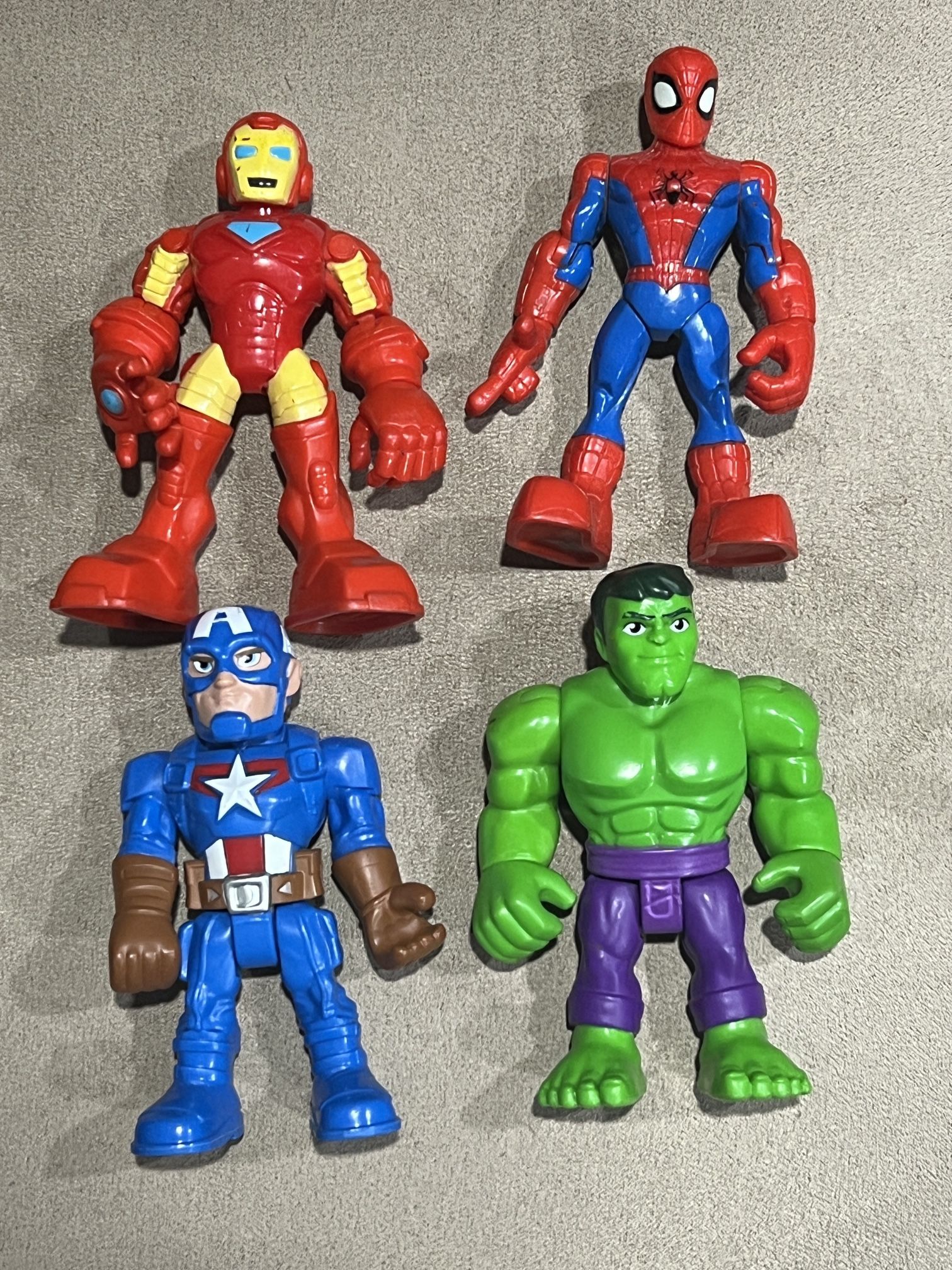 Marvel playskool Spiderman & Ironman & Hulk & captain America lot of 4 figures