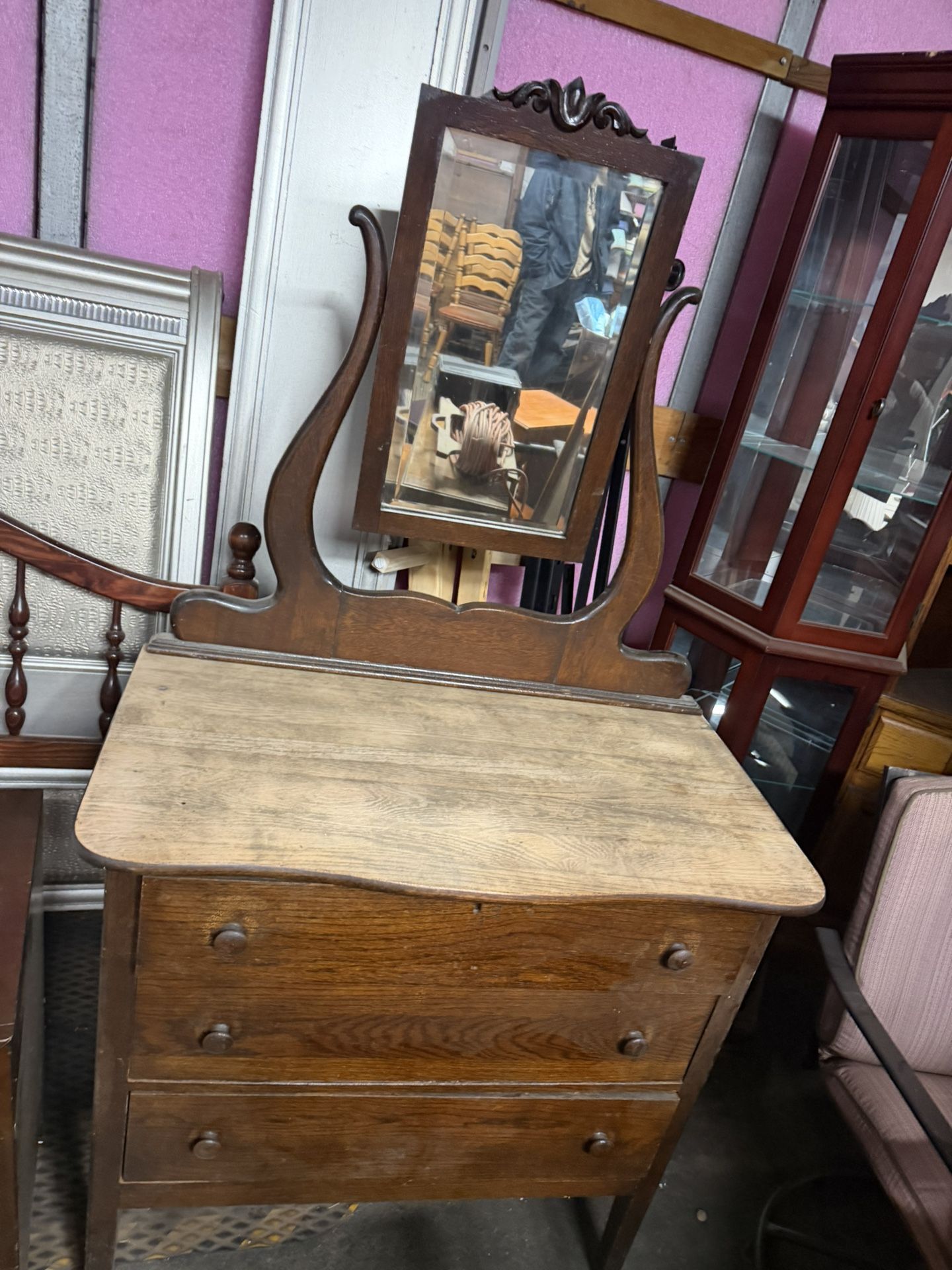 Antique Chest Dresser With Swivel Mirror