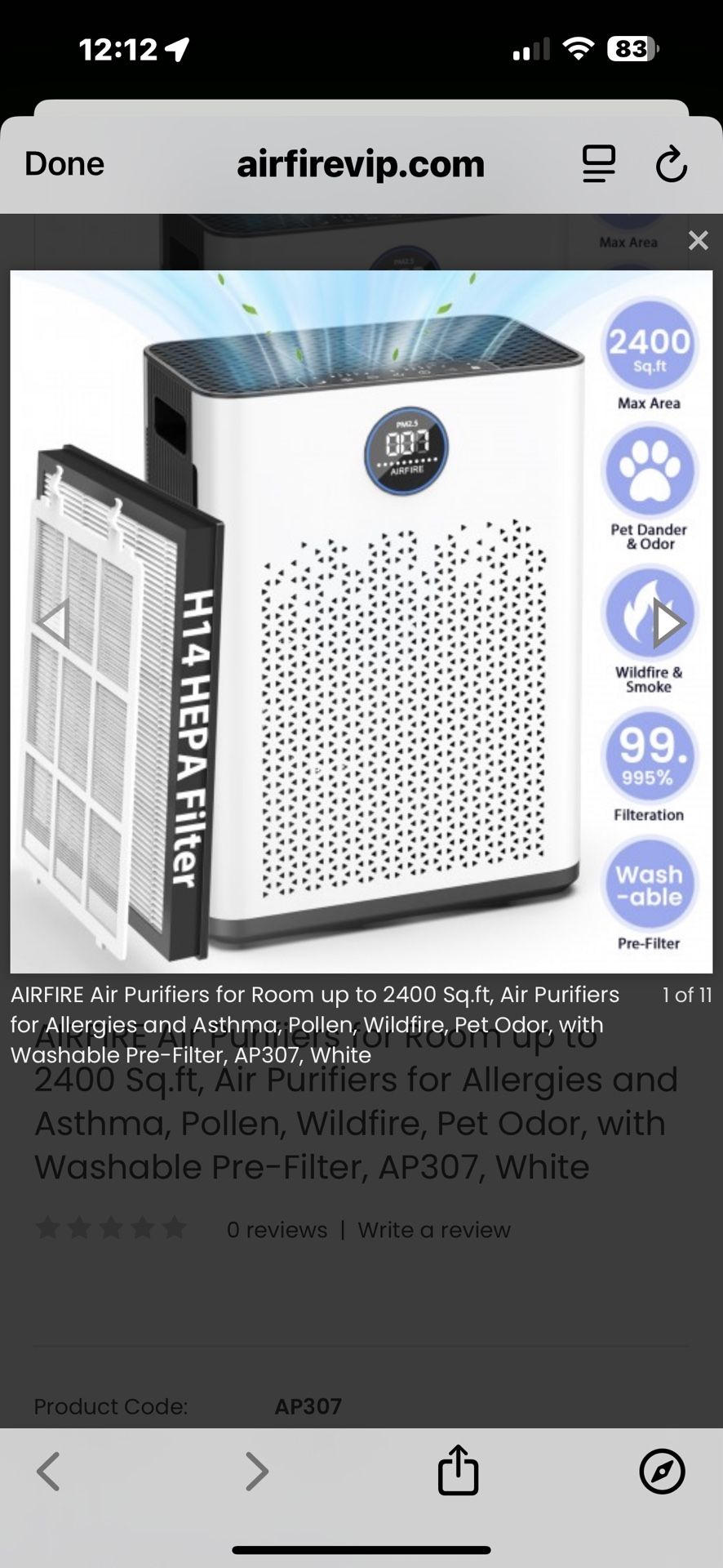 Airfire AP307 Air Purifier – New / Open Box – Covers 2400 sq.ft.