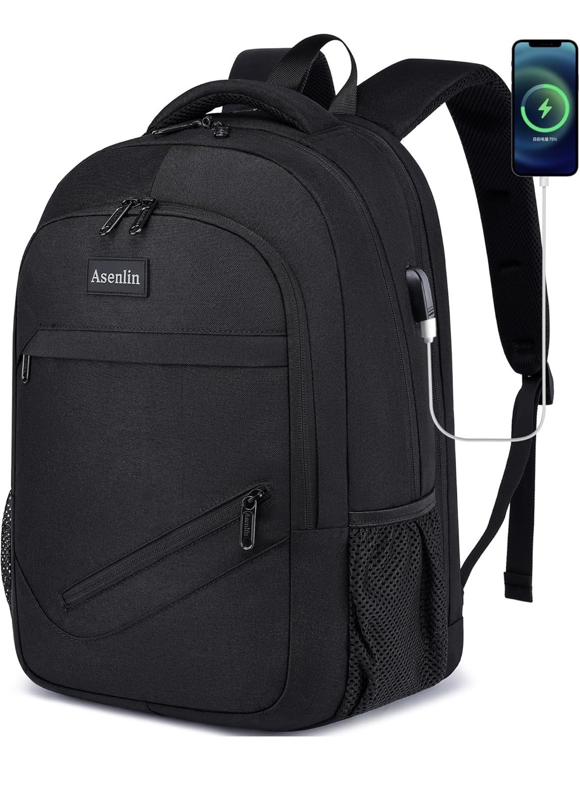 Asenlin Travel Laptop Backpack for Women & Men,Water Resistant Business Slim Sturdy Laptops Backpack with USB Charging Port,Fits 15.6 Inch Notebook College School Computer Bag-Black