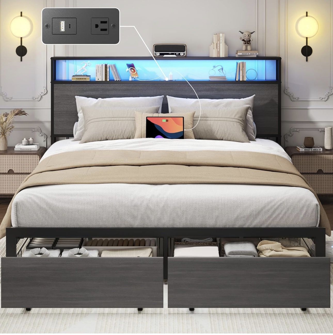 New bought and then upgraded to king comes with power outlet and LEDs already installed . Disassembled and ready to go