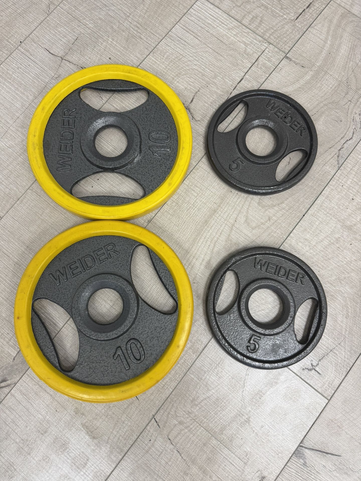 Selling a set of Wieder brand weights. A pair of 10 lbs and 5lbs weights for barbell or curl bar.