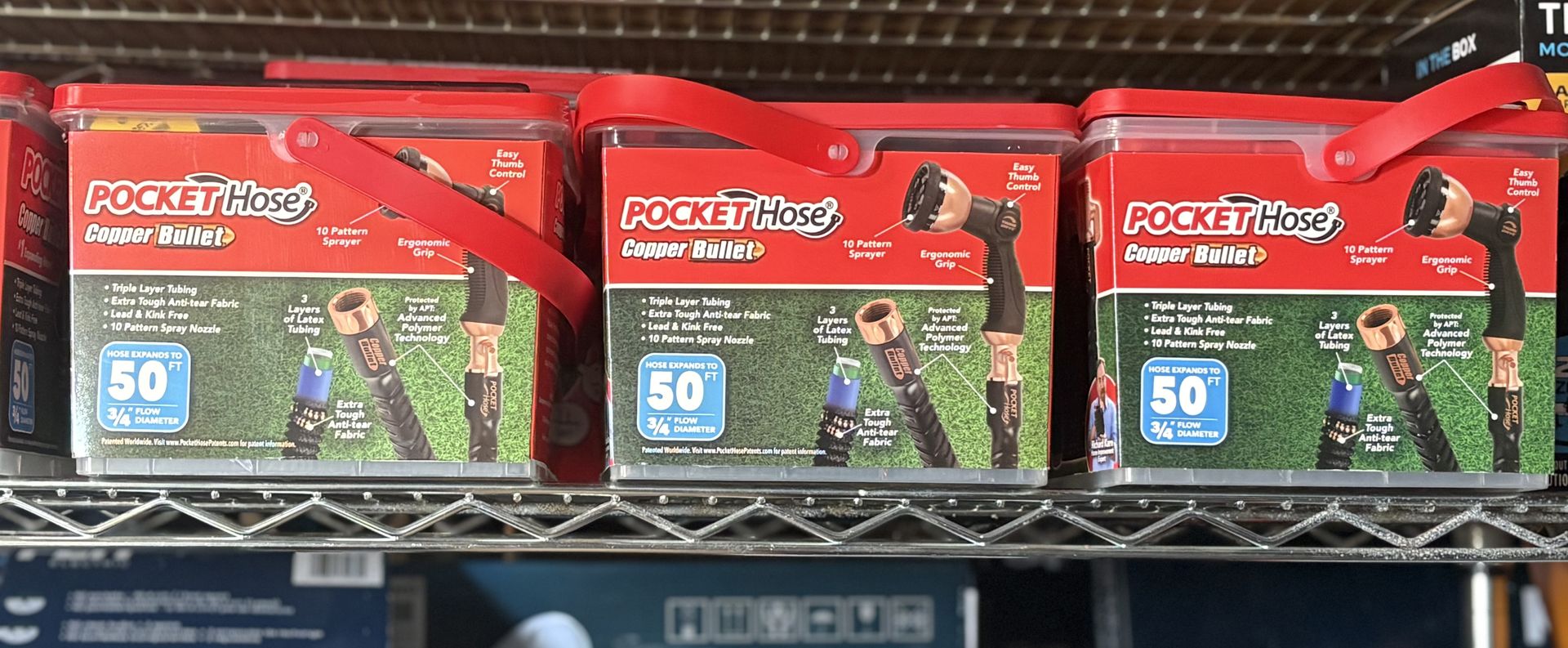 Copper Bullet Pocket-hose 50ft. New. Multiple Available Costco retails this item for $36.99 Asking $20 each. Zelle and Venmo Accepted Items sold First Come First Serve (Small Deposits accepted via Zelle and Venmo To Reserve an item for future pick up.) With Copper and Lead-Free Exterior Is Shielded With a New Tear-Resistant Polymer Blend Interior Hose Is Made With 3 Layers of High Strength Latex That Expand to a Full Sized ¾ Inch Power Hose Pocket Hose Expands to 50 or 100 FT When in Use And Retracts When Not in Use 10 Spray Settings