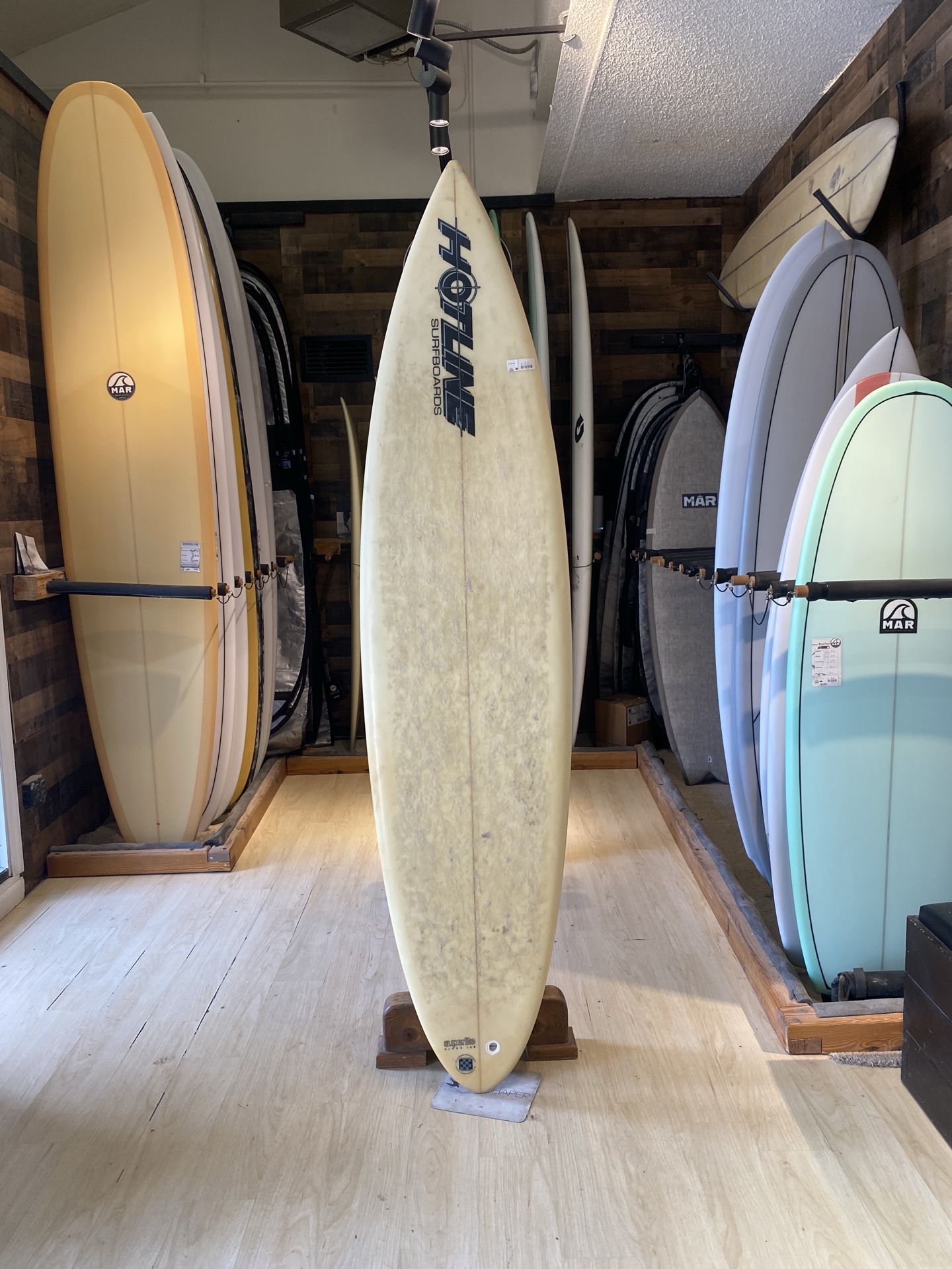 Hotline Step Up Surfboard Length: 7’2” Width: 20 1/4” Thickness: 2 3/4” Volume not listed Come take a look at MAR Surf Exchange