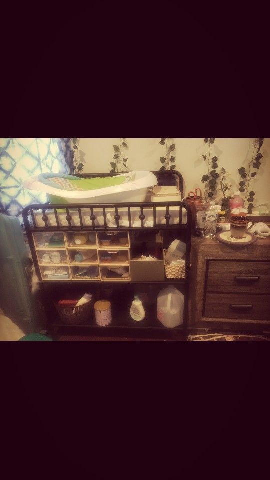 Very useful with a lot of space to store all your baby stuff.i am only selling it because someone gifted me a bed with the changing table so now i need space. This is metal so it is very easy to spray paint and change the color to your liking. The bending down to give my kid a bath was a pain until i brought this❤️.