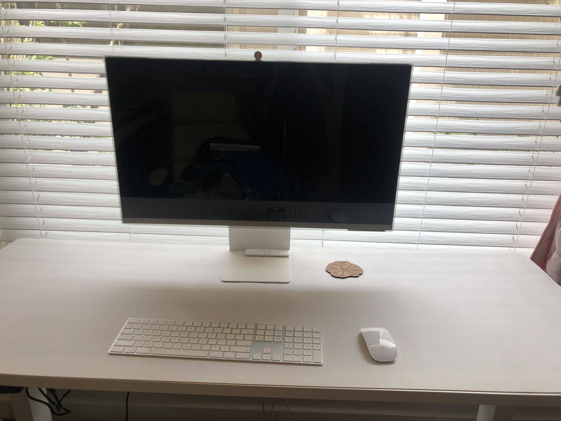 Desk with mat - $350 Apple keyboard - $100 Apple mouse - $80 Samsung 32” uhd smart monitor with streaming tv, Alexa- $600