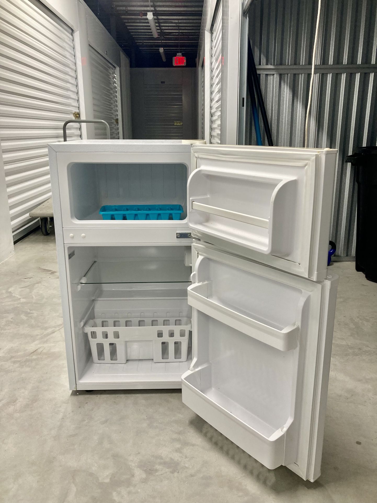 Brand New Medium Size Refrigerator with Freezer. ☀️☀️☀️ Only used one time!!!! 👍👍👍 Works great, no problems. 💯💯💯 Newly bought - was over $200. Could use for camping, apartment, an Air-bnb rental, bedroom.