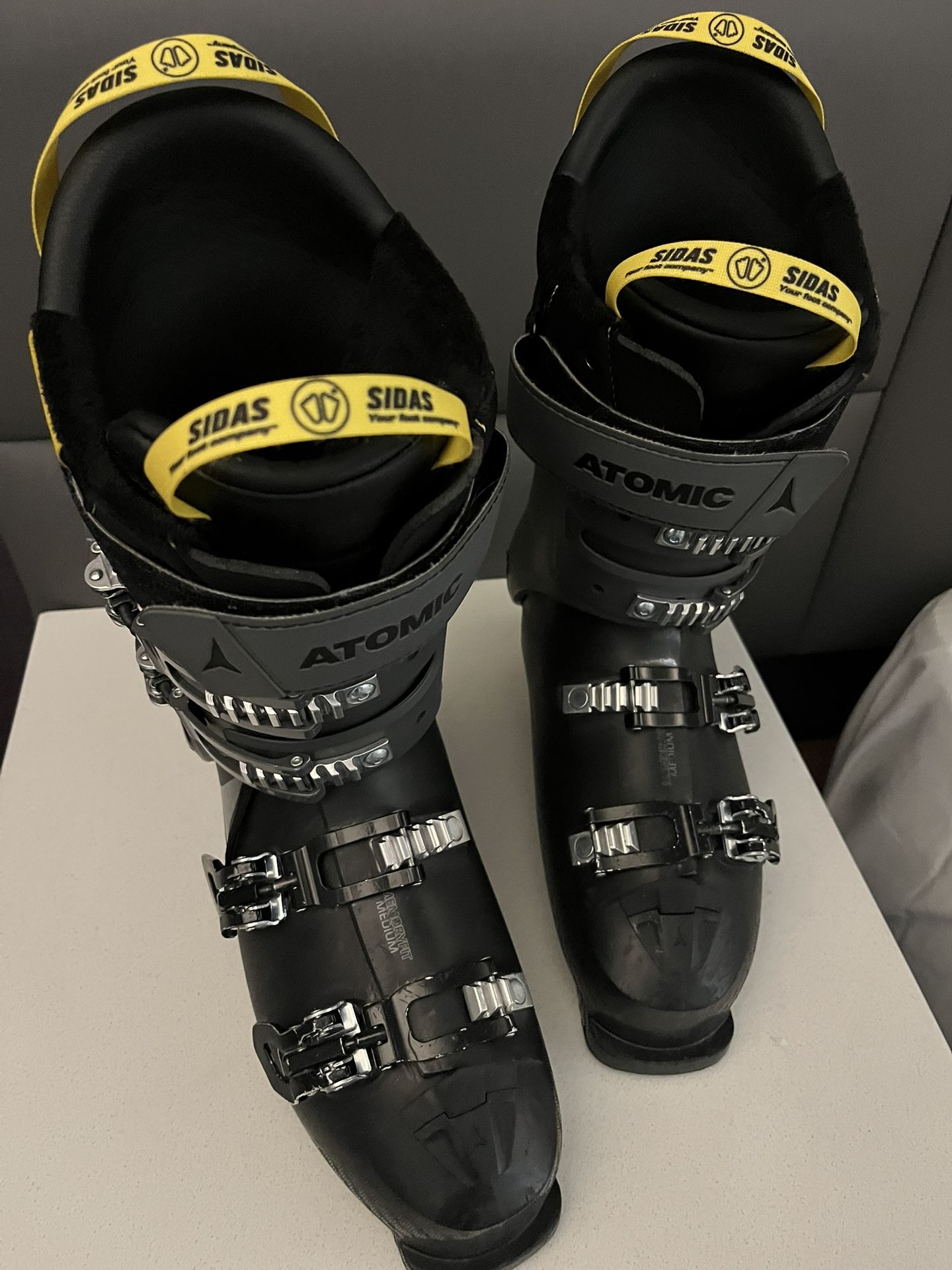These are great ski boots, for an advanced intermediate skier. used a handful of times. They come with SIDAS liners worth $200 and a set of replacement toe and heel pieces. The entire package is worth $400. 104 Medium Last. Not too narrow.