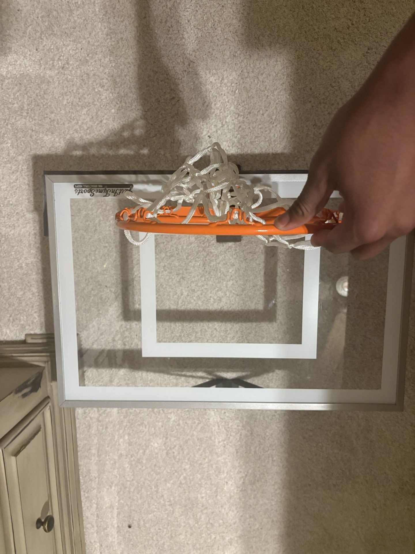 Been sitting in my room it’s basically brand new never been used. I hooked all the parts together so all you have to do is screw it into the wall and hoop.
