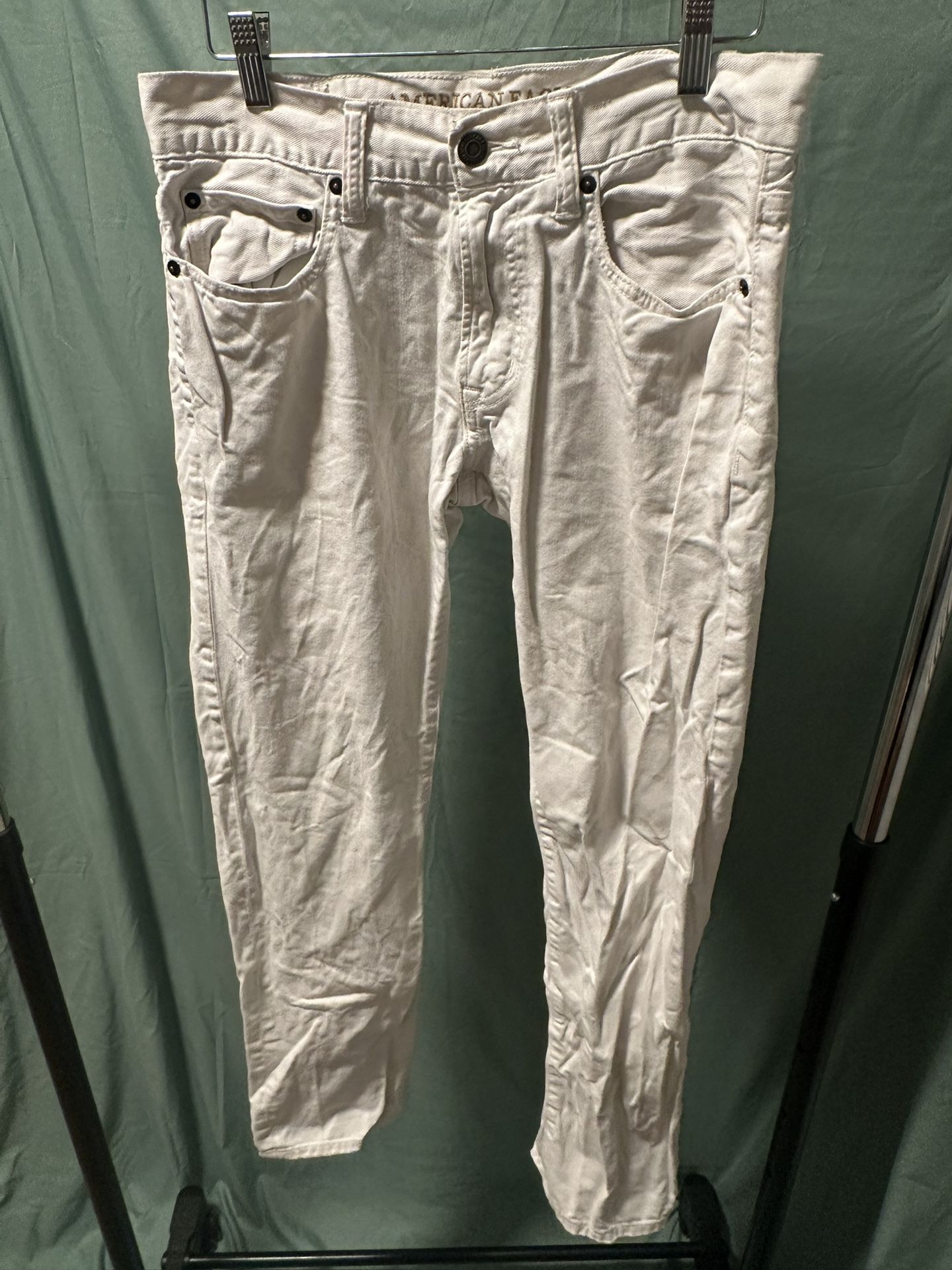 American Eagle white jeans, stain around knee. 31 x 32 slim fit. Moving soon, need gone and will negotiate