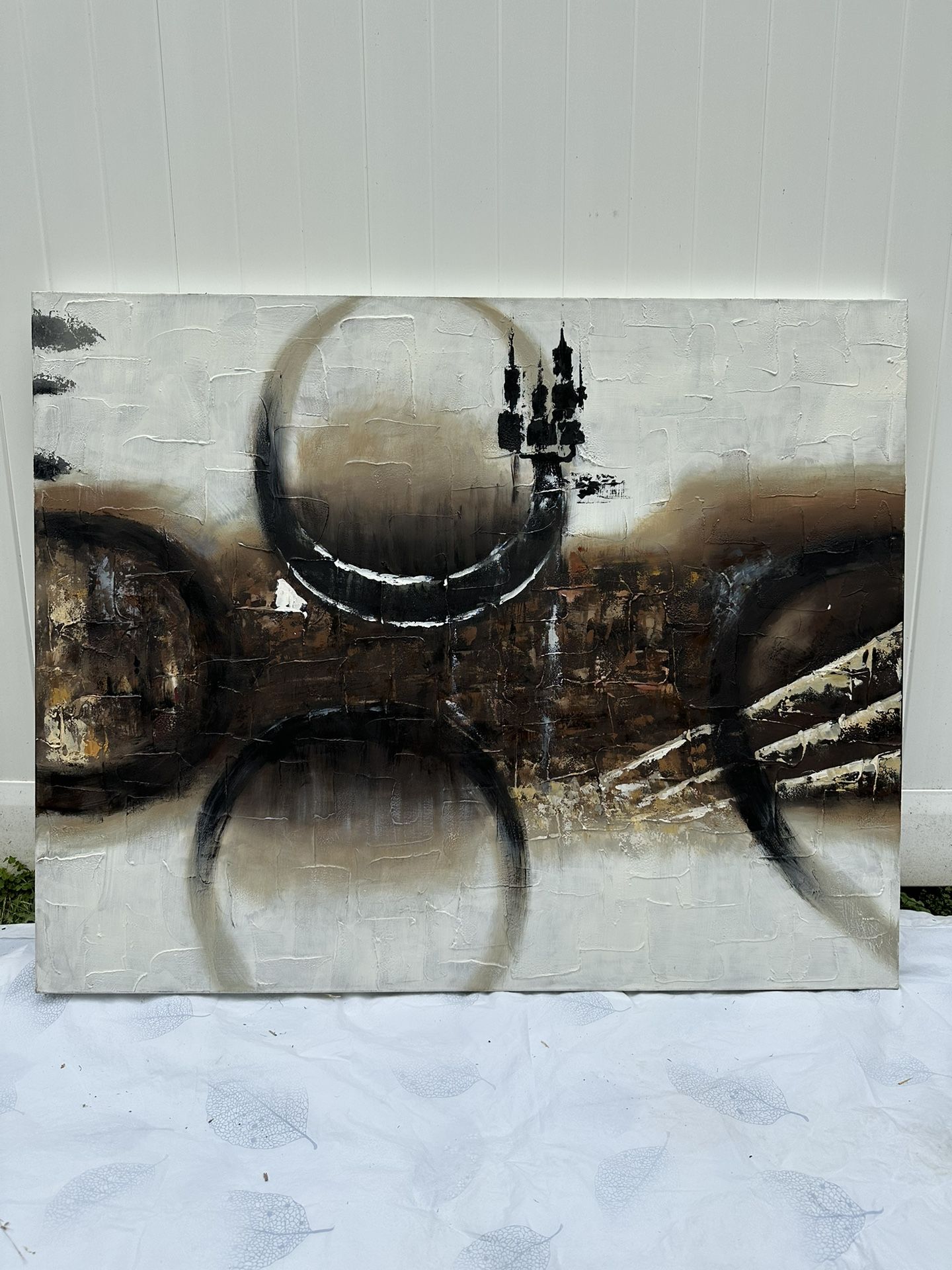 Item: A(contact info removed) Description Dabble in the abstract with this wonderful wall art with gallery wrapped canvas. Blending shades of brown, black and white, the posh palette is beautified with hand-painted, textural detailing, making each rendition one of a kind. * Unframed gallery wrapped canvas * Brown, black and white palette * D-ring bracket hanger * For vertical or horizontal hanging * Due to hand-painted, textural details, no two will be exactly the same Dimensions Dimensions * Width: 50.00" * Height: 40.00" * Depth: 1.50" Weight 12.00 lbs (5.44 kgs) 🔶🔶🔶CHECK MY OTHER OFFERS🔹🔹🔹