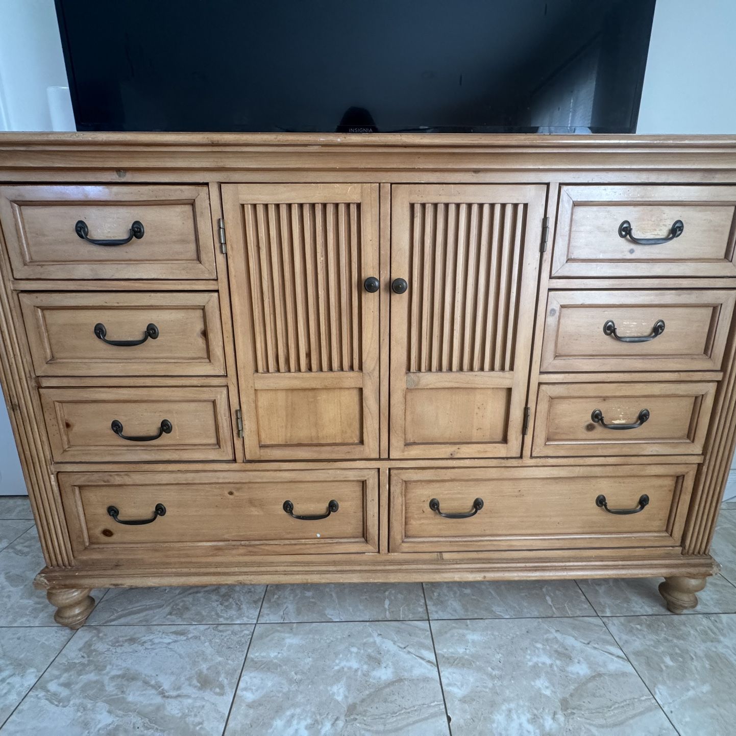 $200 obo. Need it out asap. Wood dresser with drawers and cabinet storage. Heavy, solid. Normal wear from use, fully functional. Need at least 2 people to carry out. On ground floor. 44.5in. Height 68in. Length 20in. Depth