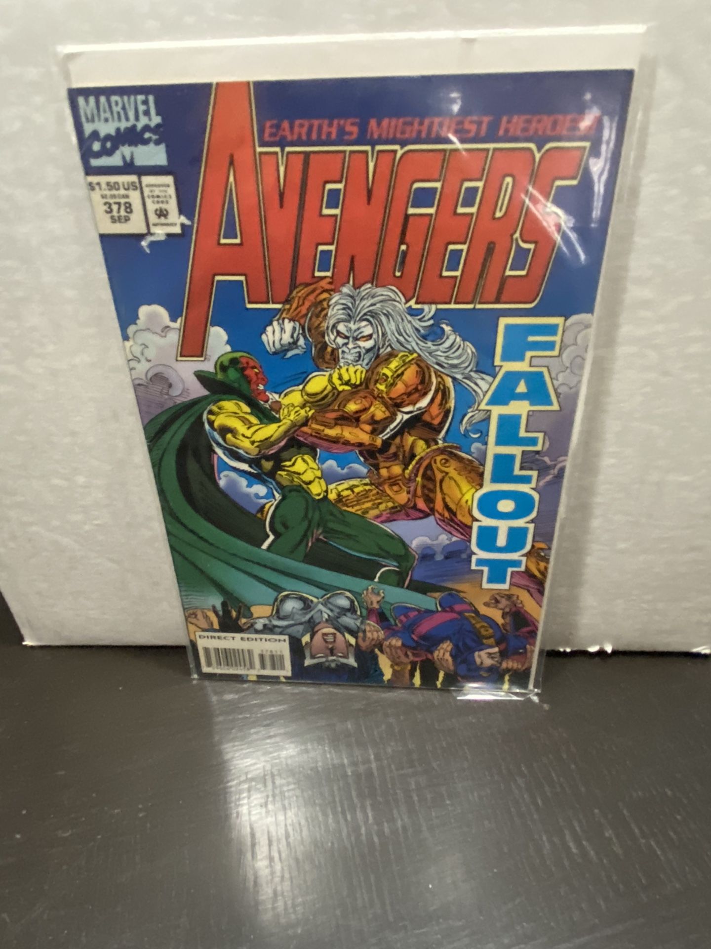 This listing is for a Avengers #378 Fallout Echoes of History 1994 Comic Marvel Comics VF+\NM-.The comic comes bagged and boarded. I am not a professional grader but my opinion is Very Fine+\Near Mint -.Please look at the pictures that I have provided. If you have any questions please contact me. We do combine shipping if you buy multiple items from me.