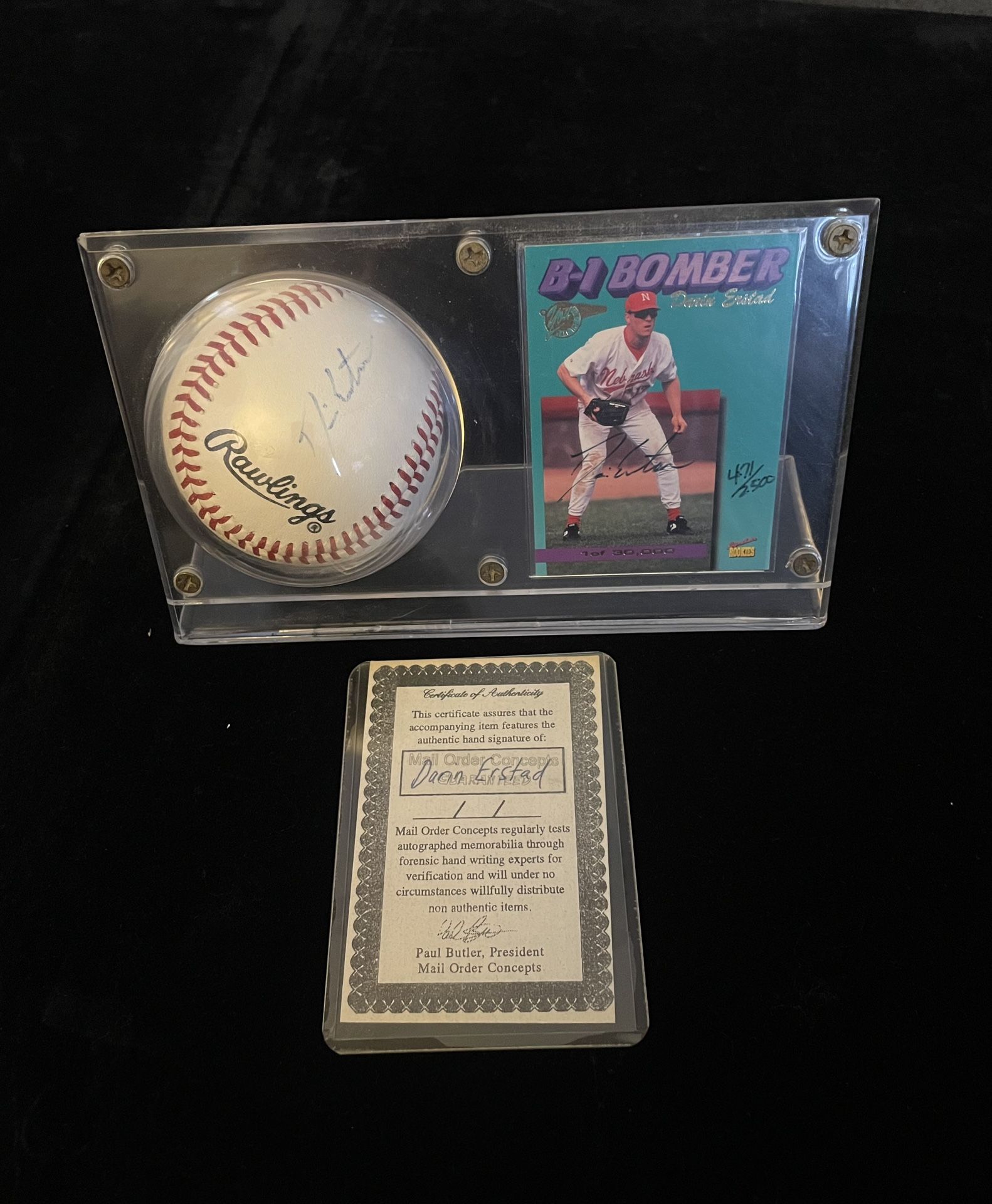 Baseball collector items. Darin Erstad autographed Rookies card and baseball. In acrylic display case. With COA. $45 or best offer.