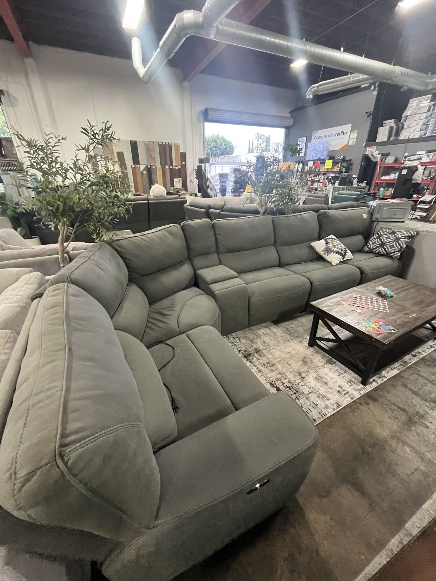 Fabric reclining Sectional In Grey (greenish)