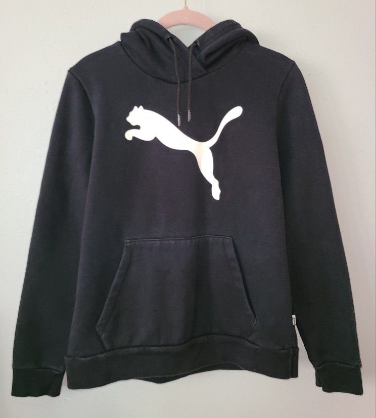 Puma Women’s Logo Fleece Black Sweatshirt Hoodie Long Sleeve Size Large