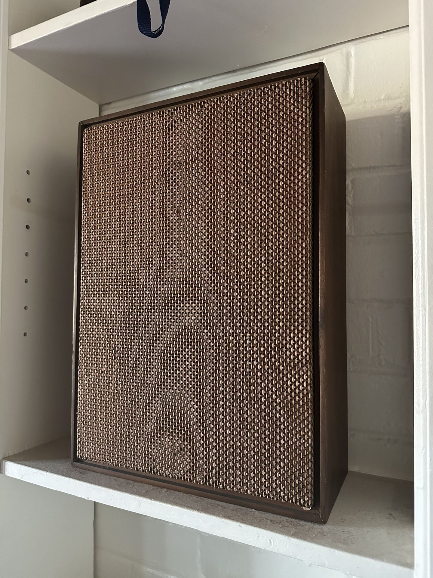 Lovely, slight, antique MCM speakers - analog so they’ll need to be properly outfitted. Great sound. 18x13x5.5