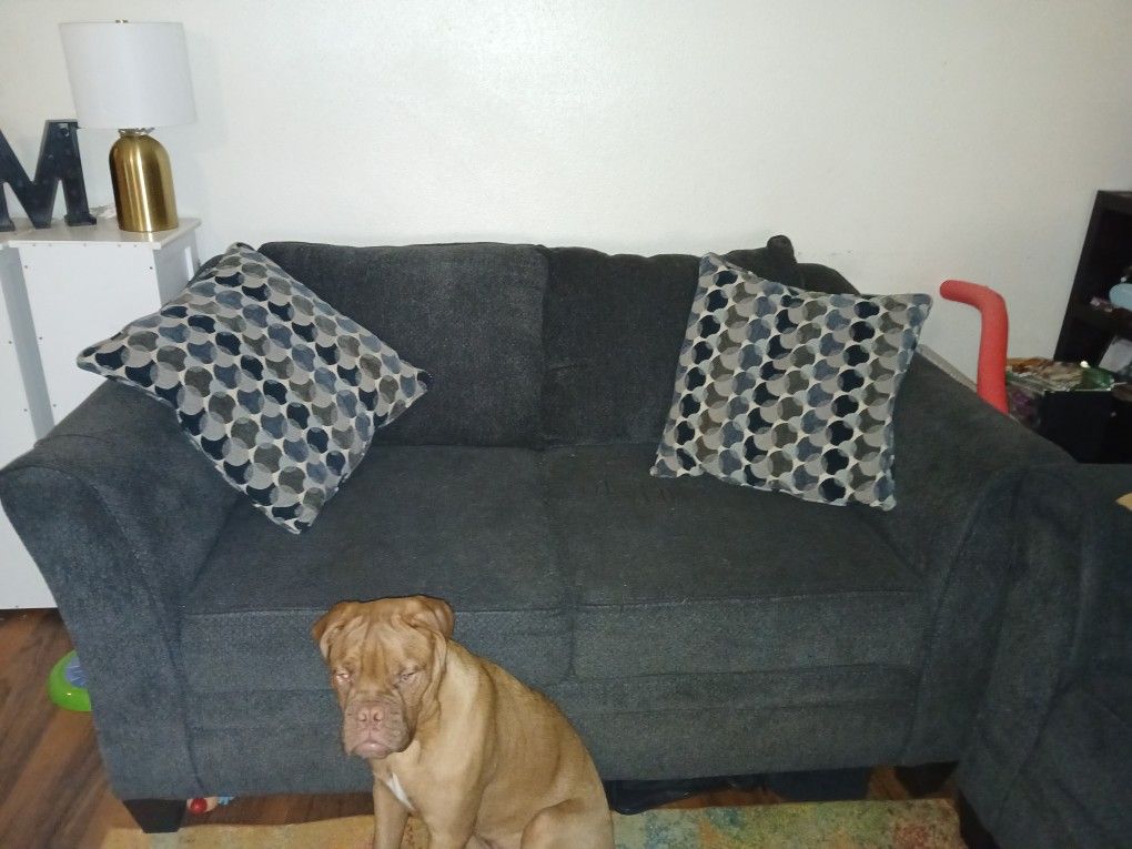 Dark blueish Gray a few snags here and there but overall good shape pillows included 400 best offer