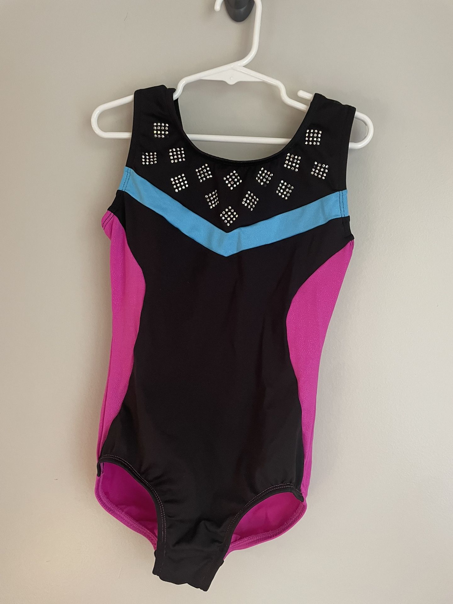 DANSKIN FREESTYLE Black Blue Purple Beaded Unitard Leotard Girls Medium 7-8 Gymnastics