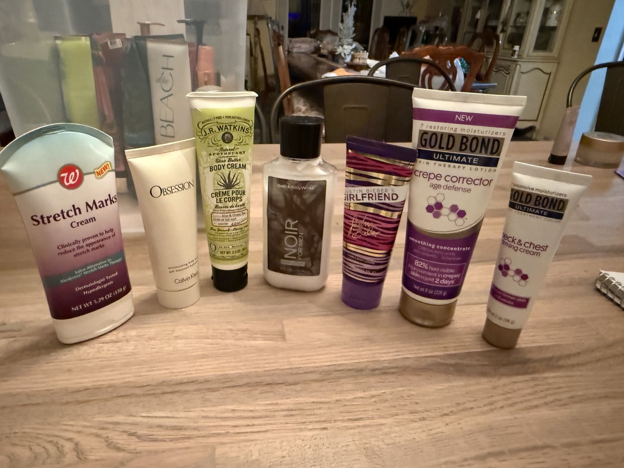 Various Body & Hand Lotions - New, Open but New or Partially Used - Prices Below - READ Description Below I have done my best with usage I have weighed most items - As stated items used or opened and price reflects this - AGAIN ITEM MAY BE USED BUY & USE AT YOUR DISCRETION 1. Walgreens Brand Stretchmark Cream - seems to be opened see weight on picture 2. Calvin Klein Obession Body Wash - item opened 3. Watkins Body Cream item at least 1/2 full 4. Bath & Body Works Noir Men’s Lotion bottle may have been used a few times see weight on picture 5. Justin Bieber’s Girlfriend Lotion - Item open but not used see weight on picture I’m Downsizing due to Remodeling - Follow Me To See Other Items Pickup on North Side of Ofallon,Mo close to Hwy P & St. Paul Road First Come First Served No Holds Cash at Pickup Listed on Other Sites