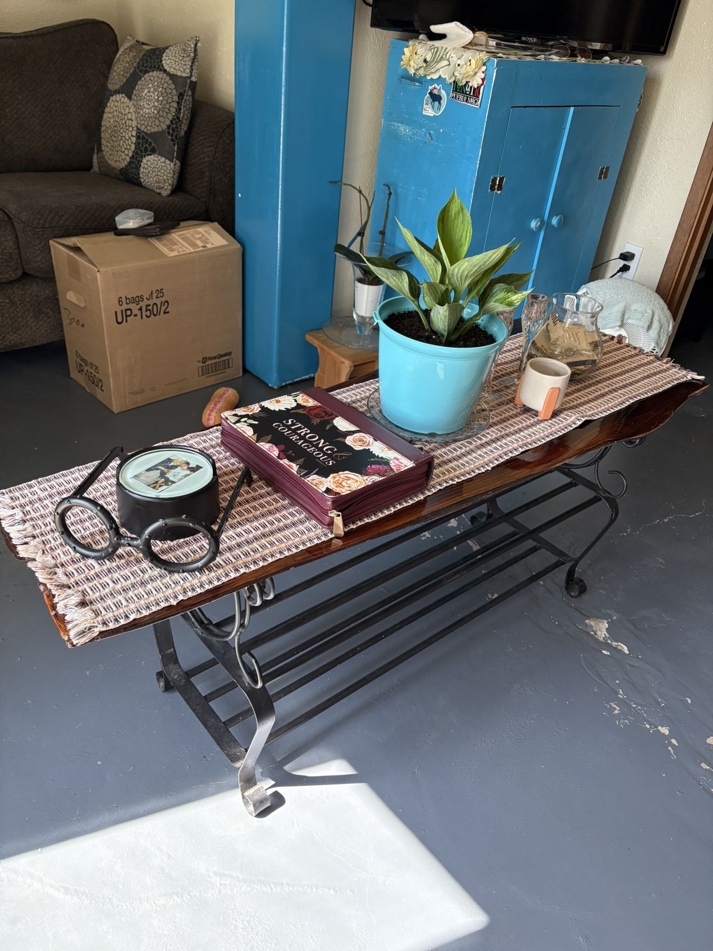 I have this beautiful coffee table custom made long is 49” wide is 18” and high 20 ‘ inches. in perfect conditions metal on the bottom wood on the top willing to negotiate the price moving and , can’t take it with me. Feel free to text for any concerns. Have a blessed day.