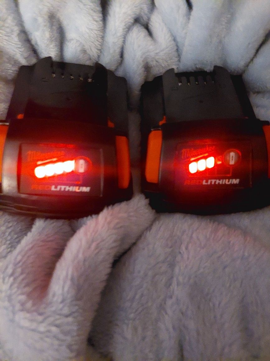 2 milwaukee m18 1.5ah batteries Both have some charge and work great. They were well taken care of by my ex roommate who left them behind when he moved. $40 for both or $20 for one.