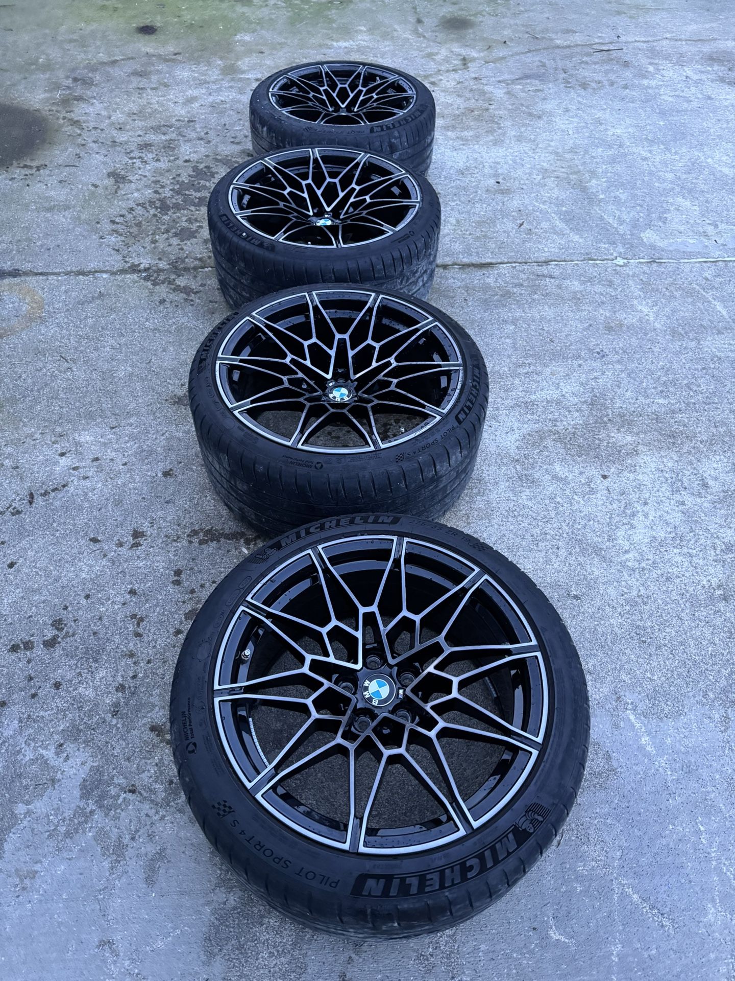 Used original, off my bmw , sold my car this as spare set . BMW M3 M4 19" 20" G80 G81 G82 826M Competition Rims Wheels set of 4 with tires