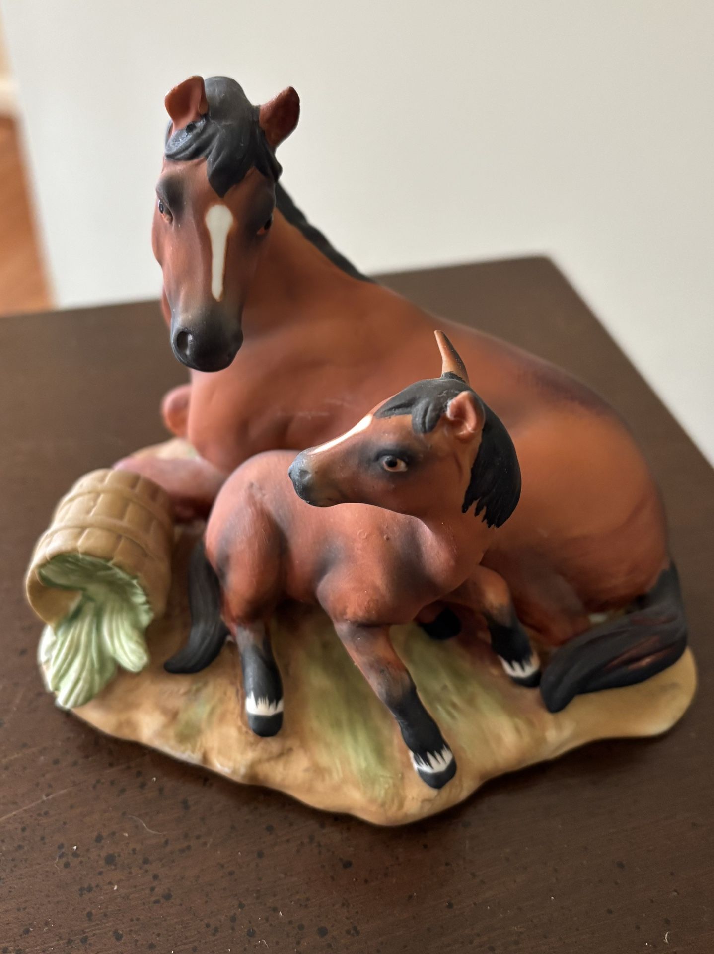 Vintage 1983 Enesco Porcelain Horses Mother and Foal