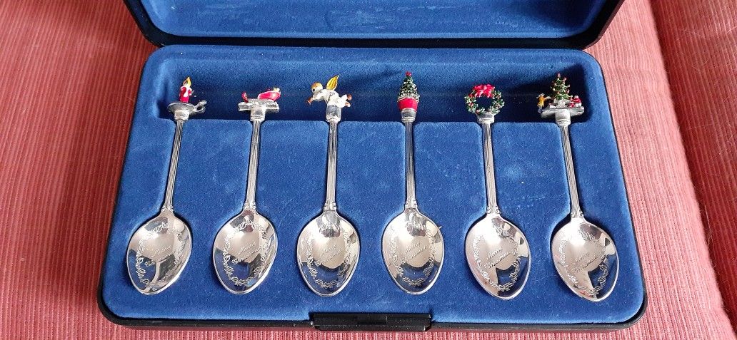 Set of silver Plated Christmas collectors spoons. Hand painted figural holiday themed handles. Location Gilbert/ Chandler
