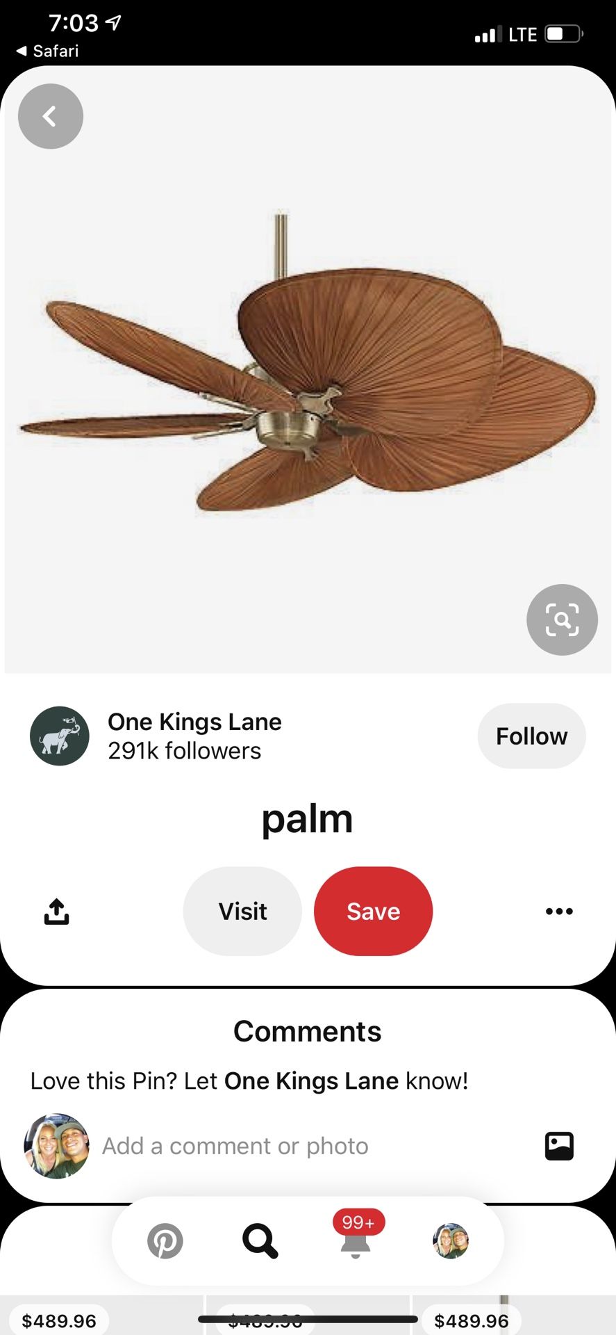 Fanimation ceiling fan with palm blades 22”