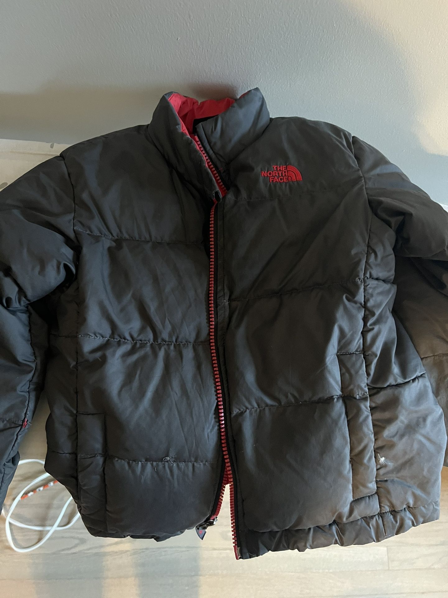 North face warm jacket boys 6 years old. A small tear in the inside from washing machine. Else great condition.